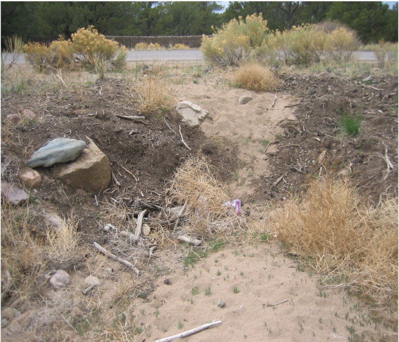 isn’t doing his darn job! But first, I’m sorry that I may lose my cool here. Most of you who know me, know I’m usually a cool-headed guy. So, I’m an old man in my 70s now who has slowed down of late in doing things. Yet when I find a problem locally that can cause problems for my fellow locals, I still get ahold of the people who are supposed to take care of such problems before they get any worst. In this case, Ross Gary is that person. I spoke to him over the phone last spring about 2 problems just off my property on POA open space land, just off our main road in the Baca. Please take a look at the photos below and then I’ll continue writing about what you’re looking at: